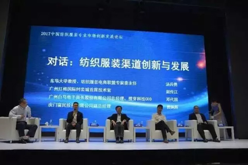 會(huì)上,來自東華大學(xué)教授、紡織服裝電商聯(lián)盟專家委主任湯兵勇,廣州紅棉國際時(shí)裝城首席技術(shù)官趙傳江,廣州白馬電子商務(wù)公司總經(jīng)理、搜芽科技CEO鄧代國,虎門富民投資有限公司副總經(jīng)理曹炳輝,圍繞“紡織服裝渠道創(chuàng)新與發(fā)展”的主題進(jìn)行對(duì)話,為與會(huì)嘉賓帶來一場(chǎng)智慧盛宴。 |