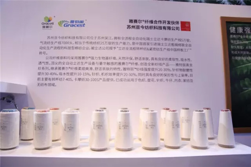 可以說,雅賽爾纖維開啟了雙方合作共贏的良好局面。在此次紗線展上,雙方再次強強聯合,舉行了“雅賽爾強力生物基纖維-蘇州亙今轉杯紡&緊密紡高端紗線生產樣板基地授牌暨雅特麗品牌標識揭幕”儀式。