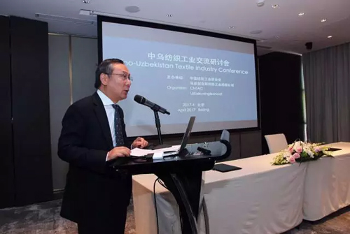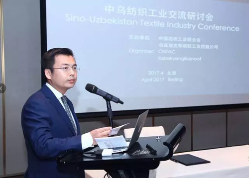 金昇集團副總裁金浩 與會中國企業代表還就烏政府對紡織業的最新政策支持,勞動力工資水平、受教育程度以及烏棉花質量標準等問題與烏方進行了充分的交流。 受烏方和江蘇金昇集團的邀請,今年7月在利泰紡織烏茲別克斯坦一期項目投產啟動時,中紡聯領導擬將率領代表團赴烏考察調研。相信通過雙方的共同努力,未來中烏雙方在紡織產業的貿易投資促進和具體項目推進中將達成更多豐富的成果。