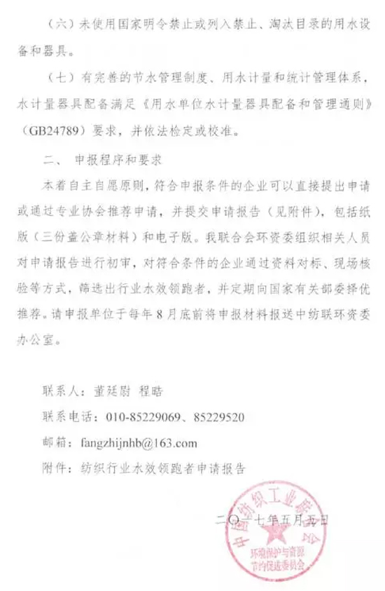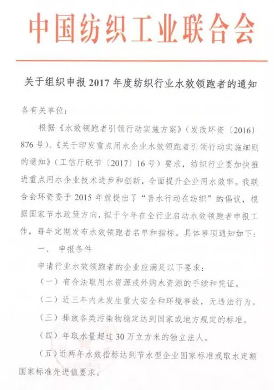 | 中紡聯通知|紡織行業水效領跑者申報正式啟動 |