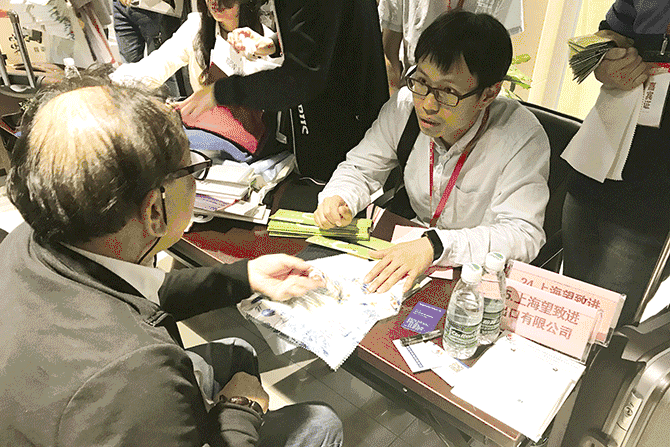上海法娜妮:無縫對接,一站式服務很棒 來自于上海的法娜妮服飾有限公司,專業從事高檔童裝的設計、生產與銷售,主要出口日本、歐美等國家和地區。由于童裝占據主導,面料方面突出服飾的童趣與可愛,并且強調著舒適與時尚相融合;青睞于天然、陽光綠色、環保的國際原則。據了解,這已經是他們第三次參加中國綢都網舉辦的國內對接會;前兩次參加后與本地供應商合作也較為緊密,采購意向主要是偏向于絲棉混紡以及提花、印花類面料。該公司采購人員表示,盛澤作為紡織特色產業基地,到本地來進行采購、交流,形成了產業鏈的無縫對接,對綢都網舉辦的這類一站式服務甚感滿意。 蘇州進出口集團:每次有不一樣驚喜 蘇州進出口(集團)有限公司是江蘇省重點外貿出口企業之一,該集團旗下現有蘇州恒潤進出口有限公司、蘇州恒生進出口有限公司、蘇州恒豐進出口有限公司、蘇州恒瑞進出口有限公司等10多個子公司,主要從事紡織品、服裝、針織品、輕工藝品等商品的進出口業務;也是中國綢都網對接會上的“老朋友”。蘇州進出口集團各公司采購商代表,紛紛表示盛澤地區面料品種豐富,無論是雪紡、亂麻等薄型面料,還是棉衣、羽絨等厚型面料都能找到相應廠家,并且現場已與多家供應商達成了采購意向。雖然與盛澤本地企業有合作,但這次前行還是發現了更多的新品與選擇,真的是每次接觸都有不一樣的“驚喜”。