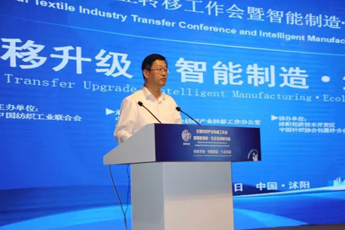 中國紡織工業聯合會副會長、中國針織工業協會會長楊紀朝,中國紡織工業聯合會副會長孫淮濱,中國工程院院士俞建勇,江蘇省紡織工業協會會長謝明,工信部消費品司紡織處處長曹庭瑞,工信部國際經濟技術合作中心、工業4.0研究所所長王喜文,中國紡織工業聯合會副秘書長、紡織產業轉移工作辦公室常務副主任楊峻以及中共宿遷市委常委、常務副市長沈海斌,沭陽縣委書記、經濟技術開發區黨工委書記胡建軍,沭陽縣委副書記、經濟技術開發區管委會主任卞建軍,沭陽縣人大常委會主任劉瑞春,宿遷市發改委副主任王之剛,宿遷市經濟和信息化委員會副主任徐生春,宿遷市商務局副局長于德,沭陽縣委常委、經濟技術開發區黨工委副書記、管委會副主任葛家勝等領導出席了本次會議。 同時,來自東華大學、武漢紡織大學、天津工業大學等大專院校領導;全國12個省、市、自治區,27個示范園區、試點園區的園區和企業代表、地方協會以及有關政府部門的領導、媒體等300余人參加了本次會議。會議由中國紡織工業企業管理協會副會長王進軍與特邀嘉賓馬丁丁主持。 胡建軍談到,全國紡織產業轉移工作會暨智能制造、生態發展研討會在沭陽隆重開幕,這不僅是沭陽縣紡織產業轉型發展再上新臺階的標志,也是全縣經濟發展中的一件大事、喜事和盛事。