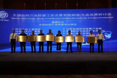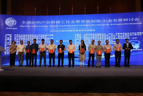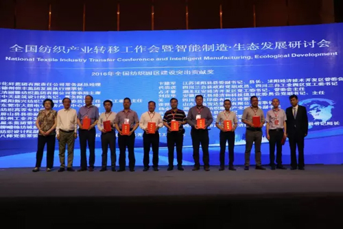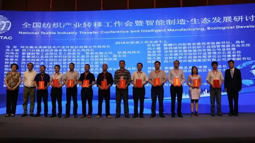 綠色生態是紡織產業可持續發展中的重要內容,為此,孫淮濱就產業轉移中的生態與綠色發展問題談到,產業轉移是一個生產要素在空間上的位移。其中成本要素是轉移的一個重要動力。當前,成本驅動的轉移在逐漸變弱,產業轉移應該有新的動力,智能制造和生態發展成為更重要的動力。園區作為產業轉移的載體,應該建設成為生態文明和綠色發展的園區。生態與綠色的概念并不完全相同,生態是指資源與環境的狀態,我們要建設資源節約、環境友好的園區,處理好人與自然、人與社會、人與人之間和諧共進的關系。綠色是一種發展方式,與生態文明的建設發展息息相關。 從園區建設上來講,可借鑒綠色發展“ 1+5 ” 模式:“1”是指準入條件,要符合國家相關政策,“5”是指生態經濟、生態環境、生態人居、生態文化和生態制度,以此指標體系來評價園區生態文明建設水平,可使生態文明建設落到實處。 可從三個層面推進綠色發展:一是產品層面的全生命周期的綠色管理;二是綠色的5化原則建設綠色工廠,為綠色制造體系奠定基礎;三是以品牌企業為龍頭,規范供應鏈的各個環節,提高供應鏈的綠色水平。 此外,沭陽縣委副書記、經濟技術開發區管委會主任卞建軍,河南西平縣人民政府縣長李全喜,上海中昊針織有限公司董事長高寶霖以及寧夏如意科技時尚產業有限公司董事長宇恒星等人還就智能制造在行業、企業中的應用進行了主題推介和經驗分享。 實際上,行業在產業轉移的過程中早已不乏對智能與生態的探索者。近年來,江蘇沭陽經濟技術開發區圍繞“綠色”、“智能”兩條主線,結合實際情況,全力打造高度集約化的特色產業園——沭陽智能針織產業園,“智能時代”的到來使沭陽針織業在“經濟冷環境”下出現了“熱”發展的“沭陽現象”。而“沭陽智能針織產業園”的推出,則是為我國紡織產業開展“智能產業園區”建設和以智能制造園區推動紡織行業產業轉型升級提供了寶貴的經驗。 為產業轉移工作樹立試點、示范 表彰產業轉移優秀工作者 隨著紡織結構調整和轉型升級,紡織產業轉移已呈現出新的態勢,根據《國務院關于中西部地區承接產業轉移的指導意見》和國家工信部《關于推進紡織產業轉移的指導意見》精神,以及推行“一帶一路”倡議的需要,經過地方政府的申請及有關紡織行業協會的推薦,中國紡織工業聯合會會同有關部門考察評審,研討會上宣布,決定將新疆阿拉爾經濟技術開發區、新疆尉犁工業園區、黑龍江亞布力服飾創意產業園區、四川三臺工業園區、江蘇鹽城紡織染整產業園、河南西平產業集聚區、新疆巴楚工業園區列為全國紡織產業轉移試點園區;授予云南保山輕紡產業園、四川屏山縣工業園區、江蘇沭陽經濟技術開發區、陜西咸陽市新興紡織工業園、湖北川東中部輕紡服裝之都為“全國紡織產業轉移示范園區”稱號。 此外,在全面落實“一帶一路”國家建設,以及長江經濟帶、京津冀協同發展、中西部轉移的工作中,行業協會及園區圍繞“調結構、促升級、建設特色園區、智慧園區”為主線,積極開展工作,涌現出一批抓機遇、求發展、攻難關、做貢獻的先進單位及先進個人,在他們身上集中反映了新形勢下振興紡織的精神面貌。會上,還宣布了“關于表彰2016年全國紡織園區建設突出貢獻獎及2016年招商工作先進個人的決定”。(文末附名單)