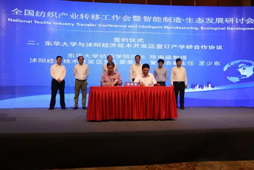 同期活動 “沭陽杯”第六屆全國紡織行業新聞獎評選啟動 2017年是實施紡織“十三五”規劃的重要一年,也是供給側結構性改革的深化之年,在助推行業發展的同時,輿論宣傳工作仍是提升紡織行業軟實力的重中之重。為推動紡織行業科學發展的正確輿論導向,鼓勵媒體做好行業新聞宣傳工作,傳播正能量,擔負起新聞輿論工作的職責和使命,促進多出好記者、好作品,“沭陽杯”第六屆全國紡織行業新聞獎評選活動在研討會期間正式啟動。 記者了解到,沭陽經濟技術開發區已連續兩屆冠名“沭陽杯”全國紡織行業新聞評選活動,而本屆新聞獎的冠名將成為該項新聞獎的冠名之最。據主辦方介紹,本屆新聞獎評選將于2018年1月上旬召開由紡織行業領導、新聞界專家及企業家代表組成的評審委員會工作會議,初選入圍基礎上評出各類獎項,并將于2018年2月對榮獲紡織行業新聞年度獎項的獲獎者開展表彰活動。 共建創新平臺,“沭陽制造”積極向“沭陽智造”轉型 近年來,沭陽經濟技術開發區十分重視人才隊伍的建設,不斷加強與科研院所的合作,共建創新平臺,進一步促進開發區紡織服裝產業轉型升級。研討會現場,就舉行了一系列的簽約儀式,與會嘉賓共同見證了“沭陽制造”向“沭陽智造”轉型升級的重要時刻。