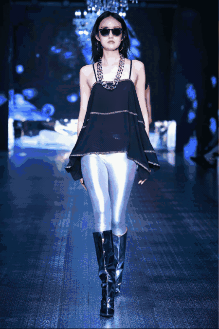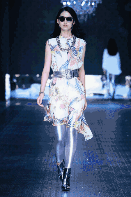 本季FéRAUD發(fā)布會以“SILVER DREAM”為的主題。整個舞臺以銀色夢幻風(fēng)格渲染,熱帶雨林的夢幻背景與時尚金屬銀色元素撞出別樣風(fēng)情,獨特新穎,使女性的魅力展現(xiàn)得淋漓盡致。