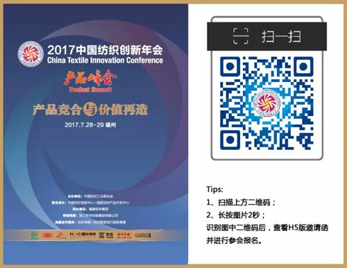 | 大咖齊聚福州,共議產品競合與價值再造!2017中國紡織創新年會 · 產品峰會即將召開! |
