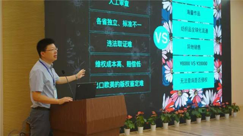 據了解,花型寶具有“辦版權、驗版權、要舉報”三大功能,因為“快速出證,圖像搜索,免費維權”的優勢,短短半年時間,目前已實現版權登記作品70000+,服務紡織行業客戶500+,實現“設計—交易—印刷—保護”全產業鏈的保護,用實際來證明:科技重塑設計未來。 多方發力推動 為紡織版權保駕護航 作為江蘇省版權貿易基地的首批六家企業,據了解,江蘇瓦欄知識產權有限公司在本屆江蘇(南京)版權貿易博覽會上除了發布花型寶以外,展會第一天,作為發起單位還組織了“中國紡織版權聯盟”成立儀式,江蘇省版權協會會長傅杰三為發起單位授牌。
