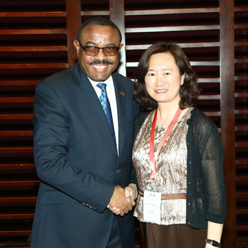 2017年5月 參加埃塞總理見面會 2017年5月12日,在聯盟策劃舉辦的埃塞總理與中國紡織企業家見面會上,無錫一棉周曄珺董事長與埃塞總理及相關政府投資部門負責人就在埃投資進行了溝通和交流。