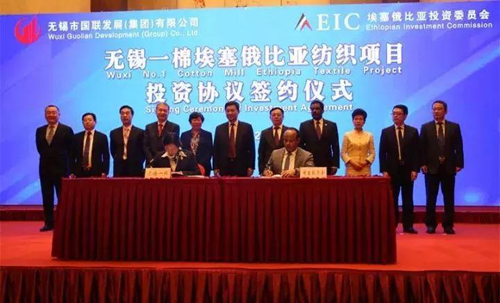 2017年5月 與埃塞方面簽訂MOU 2017年5月26日,在江蘇無錫舉行的無錫市國有企業重大投資項目簽約儀式上,無錫一棉董事長周曄珺與埃塞駐上海總領事代表雙方正式簽署投資諒解備忘錄。中紡聯副會長、聯盟執行理事長徐迎新出席并見證了此次簽約儀式。
