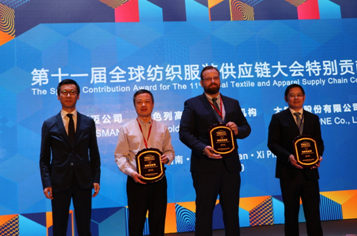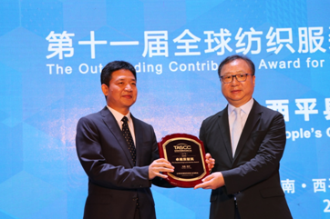 會上,為表彰西平縣政府對本次大會的支持,全球紡織服裝供應鏈大會組委會為西平縣人民政府頒發“2018全球紡織服裝供應鏈大會卓越貢獻獎”。而亨斯邁紡織染化、以色列高德拉特咨詢機構、太極石股份有限公司則分獲大會特別貢獻獎。
