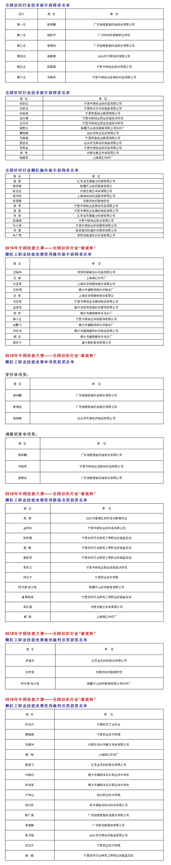 | 2018全國紡織行業(yè)“睿能杯”橫機(jī)工職業(yè)技能競賽結(jié)果出爐,廣東選手包攬前三甲! |