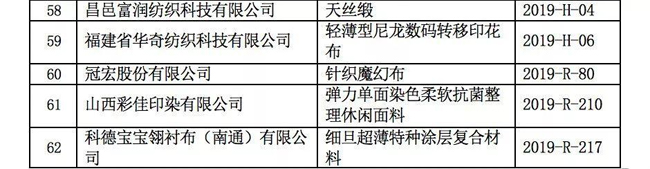 2019年度“中國(guó)印染行業(yè)優(yōu)秀面料”獲獎(jiǎng)名單