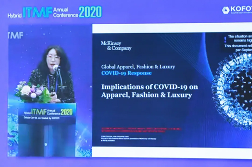 對于疫情對全球經(jīng)濟未來的影響,全光宇用三個關(guān)鍵詞來概括:脫鉤、去全球化、數(shù)字化。他解釋說,中國美國沖突升級讓世界很擔(dān)憂,希望最終能找到解決問題的辦法。去全球化不應(yīng)理解為全球化的終結(jié),應(yīng)該是全球化的重塑。供應(yīng)鏈的重心依舊在中國,但其他地區(qū)的供應(yīng)鏈也在產(chǎn)生。未來的另一大趨勢是數(shù)字化在加速。 首日會議議題一:韓國紡織工業(yè) 韓國纖維產(chǎn)業(yè)聯(lián)合會主席李相云致辭時指出,韓國紡織服裝以高質(zhì)量、時尚感、價格合理聞名。行業(yè)要生存下去,就要應(yīng)對各種挑戰(zhàn),要擁抱數(shù)字化和第四次工業(yè)革命以及此次疫情帶來的挑戰(zhàn)。其中最為重要的是要做到環(huán)境友善,實現(xiàn)可持續(xù)發(fā)展,這也是人類共同面對的問題。 韓國首爾國立大學(xué)教授姜泰鎮(zhèn)在“韓國紡織工業(yè)的平臺轉(zhuǎn)型”中指出:世界經(jīng)濟在疫情前和疫情后將會非常不同。當(dāng)前,全球貿(mào)易保護主義盛行、氣候改變、可持續(xù)、AI人工智能等領(lǐng)域的改變都將對時尚產(chǎn)業(yè)以及紡織服裝行業(yè)產(chǎn)生巨大影響。其中行業(yè)面臨最迫切技術(shù)沖擊是人工智能和數(shù)字平臺,未來,云計算、5G方面的創(chuàng)新都會使得我們的生活方式變得更加智能。 姜泰鎮(zhèn)以機器人為例指出:機器人的使用現(xiàn)在進入了商用階段,預(yù)計到2030年會有2000萬個機器人進入制造行業(yè),其中每一個機器人將會取代1.6個勞工,而這十年間機器人的智能化還將升級。這無疑對當(dāng)前制造行業(yè)是一個顛覆性的變革。 姜泰鎮(zhèn)指出,韓國紡織產(chǎn)業(yè)在數(shù)字化和時尚設(shè)計領(lǐng)域有著充足的人才儲備,韓國的時尚潮流在全球也具有一定的影響力,未來韓國應(yīng)該加快人工智能與數(shù)字化平臺的部署,提高紡織服裝行業(yè)的責(zé)任感,以應(yīng)對氣候變化等環(huán)境問題。 ![]() 麥肯錫咨詢公司(韓國)Aimee Kim在“新常態(tài)下的時尚工業(yè)”演講中分析了消費對未來經(jīng)濟恢復(fù)的作用,她認(rèn)為中國可以說是一枝獨秀,或許到今年底即可恢復(fù)到正常水平。她還認(rèn)為,未來商業(yè)模式的可持續(xù)性,以及數(shù)字化應(yīng)用都將是決定經(jīng)濟回到正軌的關(guān)鍵。
