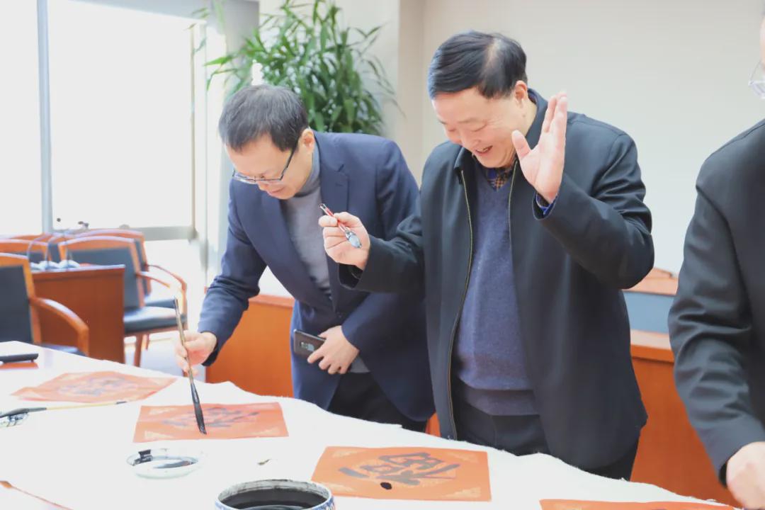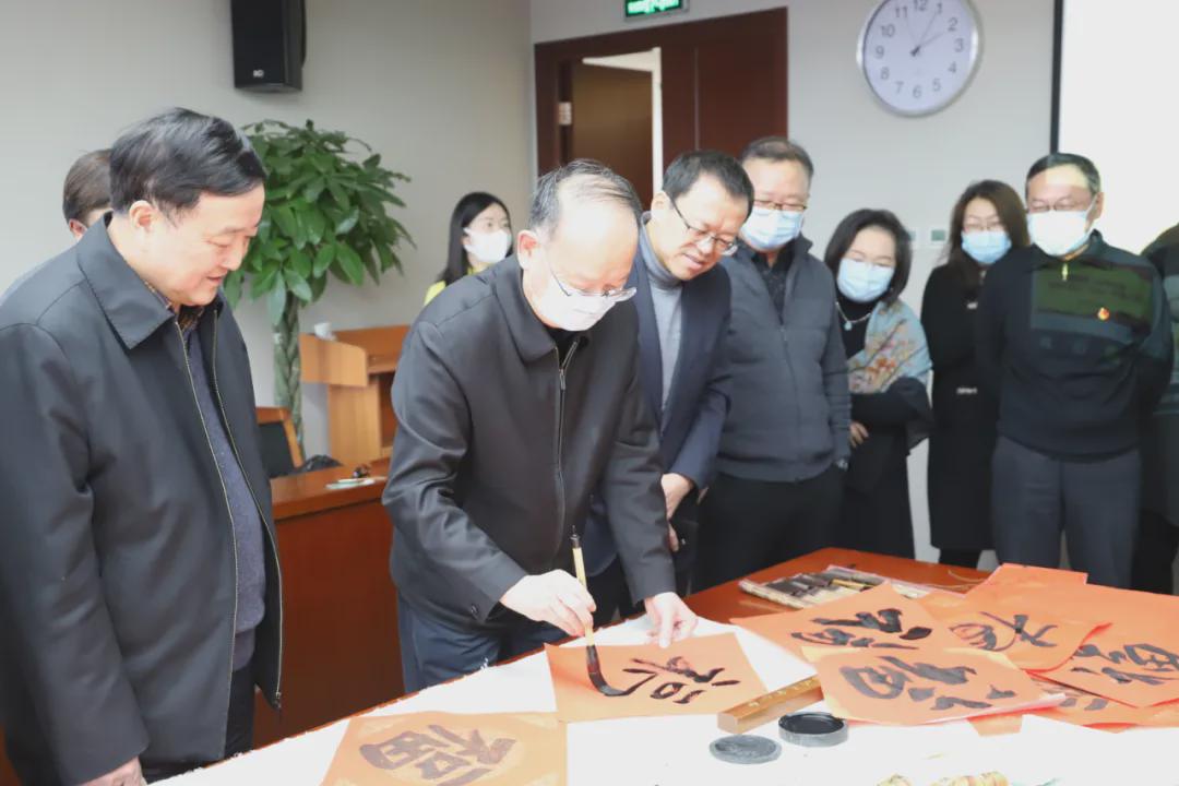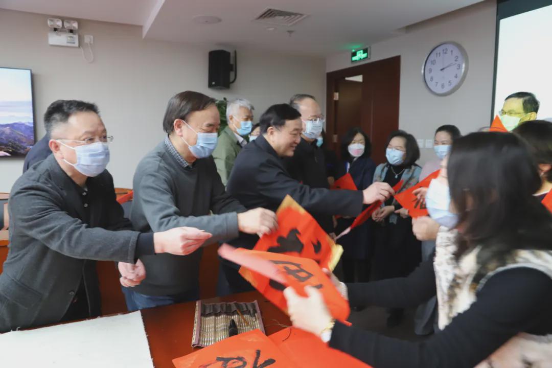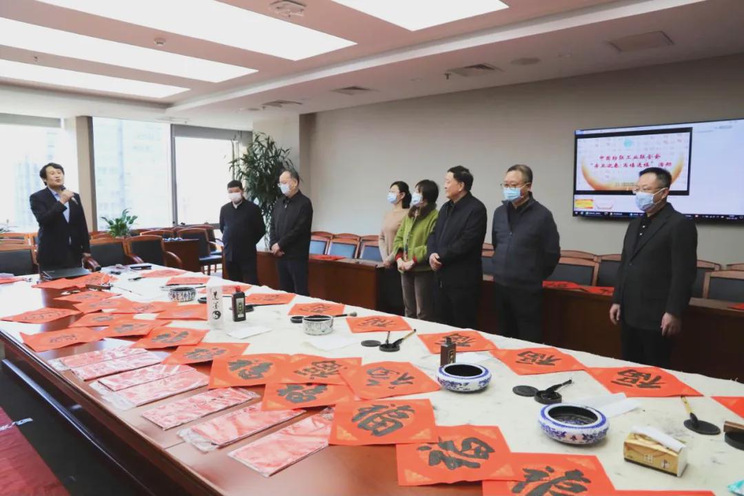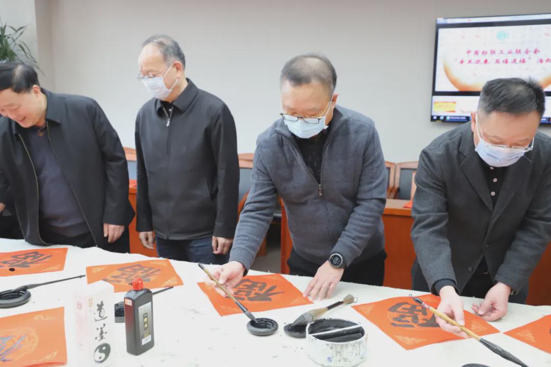 伴隨著《喜洋洋》喜慶的旋律,中國紡織工業聯合會黨委書記兼秘書長高勇,會長孫瑞哲,黨委副書記陳偉康,紀委書記王久新,副會長徐迎新、李陵申、楊兆華、孫淮濱等領導步入會場與中國紡聯工會委員代表、書畫聯誼社社員、職工代表一起“點福送福”“寫福傳福”共迎新春,向中國紡聯全體干部職工和全國紡織行業2000萬干部職工送上最“牛”祝“福”。