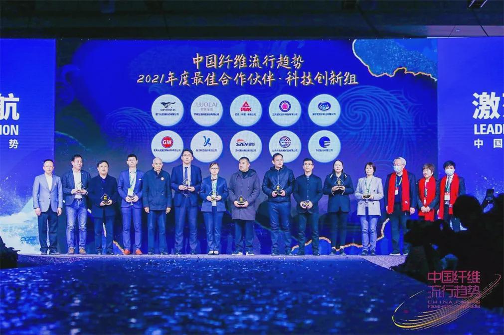 當國際超模劉冰冰身披定制華服壓軸亮相,整個秀場的沸點瞬間被點燃。作為年紀最小的福布斯中國十大超模上榜者,當18歲的中國新生代超模劉冰冰身披設計師王培沂以“海燕”為靈感特別訂制的“主題禮服”作為壓軸模特登臺的那一刻,滿滿的颯氣與東方韻味撲面而來、如海燕般勇往直前的風范瞬間Slay全場。17歲初登國際秀場,短短一年就四次走上Chanel秀場的國際超模劉冰冰,此次壓軸走秀,也用自己鮮明的風格、獨特的氣場詮釋了“乘風破浪”的中國纖維精神,氣勢如虹。 產業鏈共贏 攜手共享榮耀時刻 歷時十年,中國纖維流行趨勢發布活動已經成為向世界展示中國纖維產業最有熱度、最富科技性、最有市場潛力的纖維品種的權威平臺和促進纖維產業鏈上下游協同創新的紐帶。十年來,中國纖維流行趨勢為上下游產業鏈提供了廣闊的合作交流平臺,匯聚上下游產業鏈企業的創新活力和內生動力,促進各方在深度合作中共同提升產業鏈價值,助推整個化纖行業向高質量發展之路邁進。如今,中國纖維流行趨勢正在成為國家新材料推廣、產業鏈協同創新示范平臺。未來,中國纖維流行趨勢將繼續攜手產業鏈合作伙伴共同推動行業高質量發展與滿足人民美好生活需要的緊密結合。本屆發布會的“2021年最佳年度合作伙伴頒獎儀式”環節,表彰了與中國纖維企業在新型纖維和綠色纖維開發與應用方面達成有深入有效合作的下游企業(名單如下)。 最佳年度合作伙伴 (排名不分先后) 綠色纖維組 青島即發集團股份有限公司 江蘇互幫紡織科技有限公司 廣東壕鑫實業有限公司 紹興必安防護科技有限公司 佛山市名洲紡織有限公司 江陰聿遠紡織材料科技有限公司 曠達汽車飾件系統有限公司 紹興匯纖紡織科技有限公司 廣東前進牛仔布有限公司 魯泰紡織股份有限公司 科技創新組 廈門七匹狼針紡有限公司 羅萊生活科技股份有限公司 匹克(中國)有限公司 江蘇超拓紡織科技有限公司 海寧花剪子布業有限公司 威海光威能源新材料有限公司 浙江科藝紡織有限公司 蘇州震綸棉紡有限公司 汕頭市奮發城織造有限公司 華紡股份有限公司