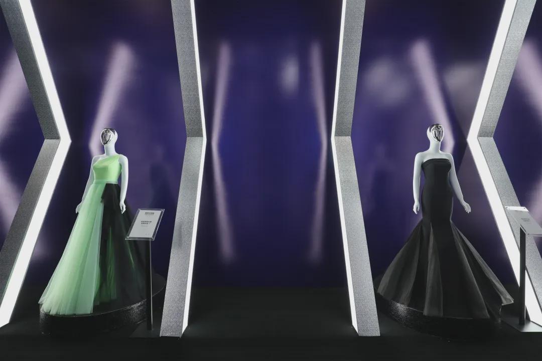 而在整場發布盛會外,桐昆·中國纖維流行趨勢2021/2022發布的靜態展區還特別打造了一個時光藝術隧道,展示了2016-2021年歷屆合作設計師的優秀作品,用創意空間、花藝設計結合服裝展示呈現趨勢十年歷程。在展區,有兩套設計師為桐昆集團定制的綠色纖維禮服也首次驚艷亮相;禮服的原始面料未經任何加工,與水晶長絲、細網紗輔料及國際立體高定剪裁結合,特別獻禮中國纖維流行趨勢十周年,吸引了諸多到場嘉賓駐足欣賞。