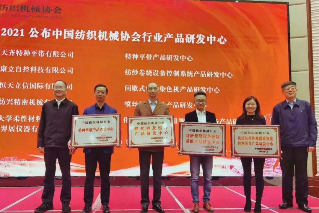 會上,五家紡機企業獲評紡機行業產品研發中心,高勇、王樹田為獲批企業授牌。