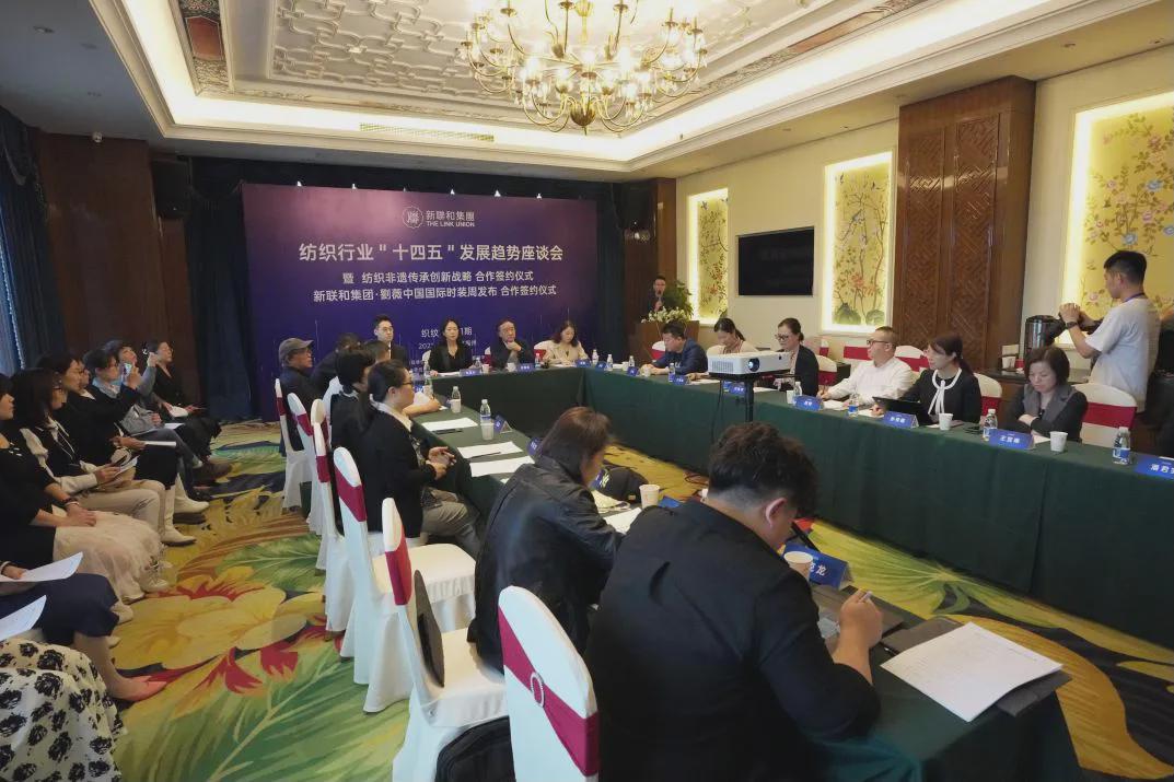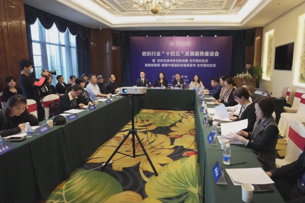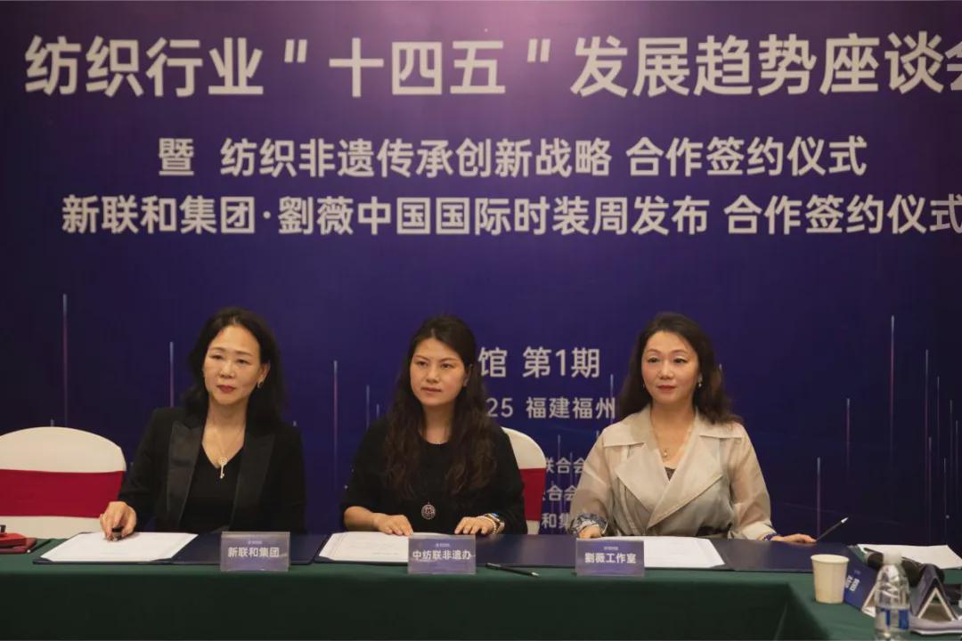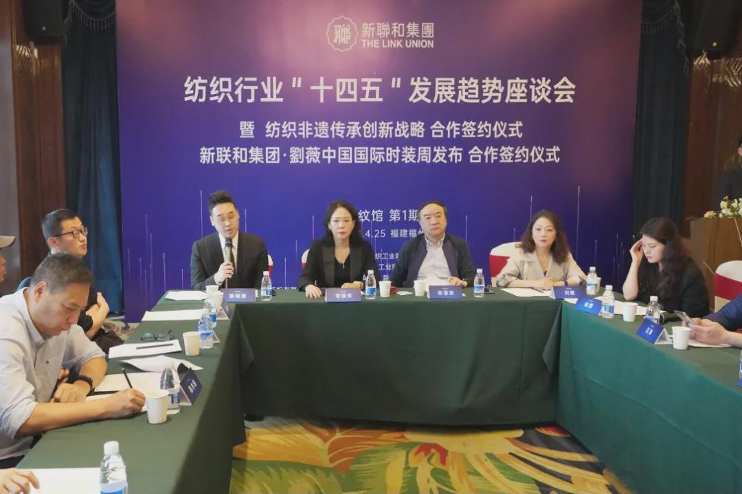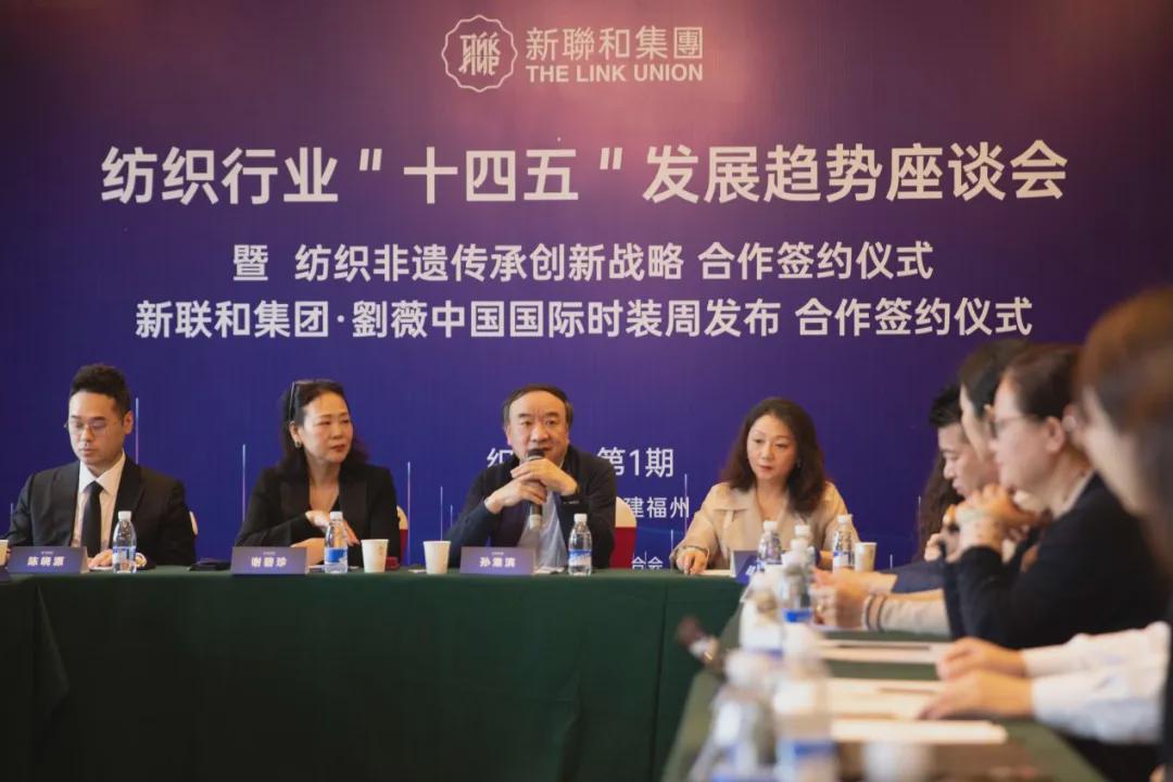 日前,由中國紡織工業(yè)聯(lián)合會(huì)非遺辦主辦,新聯(lián)和集團(tuán)承辦的紡織行業(yè)“十四五”發(fā)展趨勢(shì)座談會(huì)暨紡織非遺傳承創(chuàng)新戰(zhàn)略合作簽約儀式、新聯(lián)和集團(tuán)·劉薇中國國際時(shí)裝周發(fā)布合作簽約儀式在福州成功舉辦。此舉標(biāo)志著由中國紡織工業(yè)聯(lián)合會(huì)非遺辦牽頭,聚合中國名企、名師共同傳承發(fā)揚(yáng)紡織非遺的系列發(fā)布會(huì)將正式啟航。 中國紡織工業(yè)聯(lián)合會(huì)副會(huì)長孫淮濱,中國紡織工業(yè)聯(lián)合會(huì)非遺辦副主任陸茵,中國紡織非遺推廣大使、金頂獎(jiǎng)設(shè)計(jì)師劉薇,福建師范大學(xué)服裝系主任、福建省服裝設(shè)計(jì)師協(xié)會(huì)副會(huì)長方澤明,福建省紡織行業(yè)協(xié)會(huì)副秘書長毛祚康,福建省服裝設(shè)計(jì)師協(xié)會(huì)秘書長汪泳,福州市長樂紡織局原局長、中國針織工業(yè)協(xié)會(huì)花邊分會(huì)高級(jí)顧問陳木珠,新聯(lián)和集團(tuán)總裁謝碧珍,新聯(lián)和集團(tuán)總經(jīng)理陳曉源,新聯(lián)和集團(tuán)供應(yīng)鏈副總王宜林,新聯(lián)和集團(tuán)人力資源總監(jiān)孫秀娟,福州星球服飾有限公司董事長、福建女企業(yè)家協(xié)會(huì)副會(huì)長王梅珠等數(shù)十位來自中國紡織服裝行業(yè)、專業(yè)院校的業(yè)內(nèi)人士出席了本次會(huì)議。