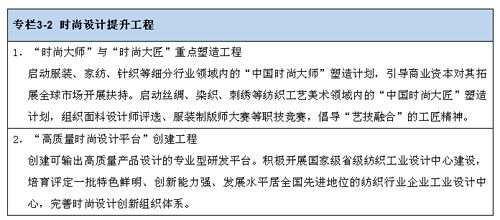 2.積極引導政府、企業、第三方機構等聯合建立時尚發展基金。重點支持創意設計服務平臺和時尚創意園區、特色小鎮等時尚載體建設;支持產教結合的“訂單式”人才培育模式,實施學校教師和企業師傅共同承擔教育教學任務的雙導師制度。