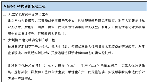 1.科技創新與設計提升目標。提升以智能預測、智能設計、智能時尚供應鏈、智能營銷為一體的時尚產業鏈綜合管理能力;加強新材料、新工藝、新技術與產業時尚發展的融合,引導個性化定制與柔性制造技術廣泛應用;加大創新研發投入,注重提高企業研發設計人員占比,工業設計投入占企業研發投入比例達到30%以上,實現發明專利、實用新型專利、外觀設計專利授權量持續增長。