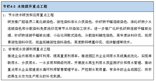 ![]() 2.提高用水效率。大力推廣先進適用的節水工藝、技術和裝備,推進水資源高效利用和廢水資源化,鼓勵紡織企業加大循環水、再生水等非常規水資源開發力度,建設非常規水資源利用產業化示范工程。加快完善行業節水標準,推動企業用水效率對標達標。開展水效領跑者引領行動,加強用水管理和水系統集成優化,創建一批典型節水示范項目和標桿企業。