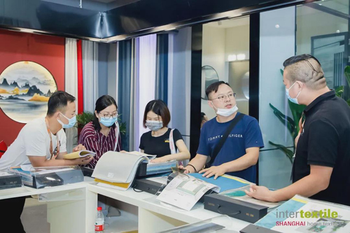 高勇一行走訪中,在華爾泰展位與負(fù)責(zé)人進(jìn)行了深入交流。在這里,每塊布料都有專屬二維碼,掃碼即可下單。該展位負(fù)責(zé)人表示,二維碼會(huì)導(dǎo)入微信小程序,華爾泰可以通過(guò)監(jiān)測(cè)瀏覽數(shù)據(jù),估算備貨范圍以及規(guī)模,實(shí)現(xiàn)快速反應(yīng)。高勇一行對(duì)企業(yè)的創(chuàng)新?tīng)I(yíng)銷表示認(rèn)可,并勉勵(lì)企業(yè)再接再厲。