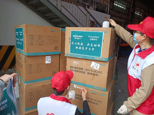 倡議在行業內發布后,不少企業及個人表達捐助愿望。倡議書發布的第二天,經中國產業用紡織品行業協會、中產協非織綠盟協調聯絡,穩健醫療&全棉時代、隆泰醫療、優全護理&金三發三家企業迅速行動,決定攜手紡織之光基金會向東華大學捐贈抗疫物資。隨即,三家企業連夜緊急備貨,并由紡織之光基金會和中產協協調打通進入上海的貨運通道。截至目前,三家企業的捐贈物資已經順利到達東華大學,并完成消殺隔離,將陸續開始為師生們發放。