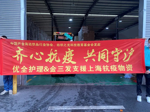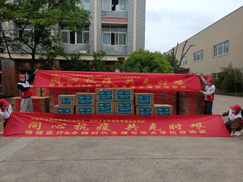 企業擔當,愛心先行。一箱箱、一件件抗疫物資體現的不僅僅是紡織人奉獻出的愛心,更是扛起了一份沉甸甸的社會責任。當前上海防疫形勢依然復雜嚴峻,紡織人將愛心和智慧匯聚成戰勝疫情的磅礴力量,和東華大學師生攜手并肩,必將打贏這場疫情防控攻堅戰。