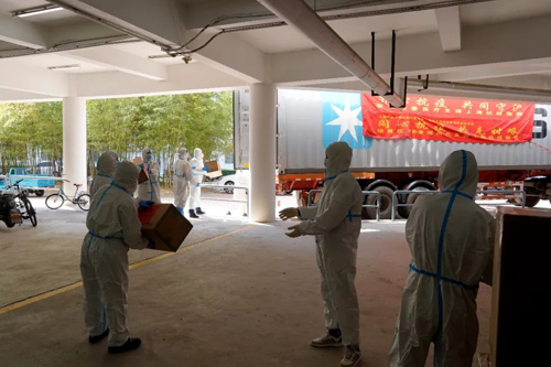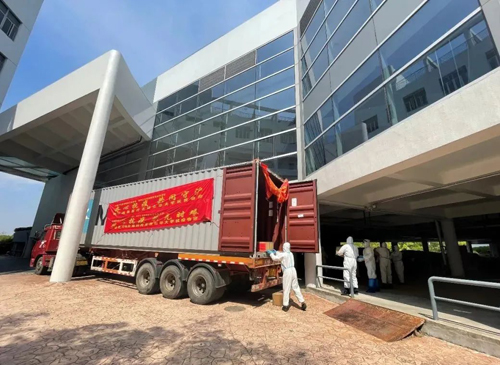 據了解,因上海疫情防控要求,無通行證外地貨運車輛不允許進入上海市轄區。紡織之光基金會與中產協積極想辦法,經協調組織,由捐贈單位浙江隆泰醫療科技股份有限公司配合協調轉運場地和車輛,將穩健醫療&全棉時代和優全護理&金三發的捐贈物資由各自工廠送到浙江湖州德清隆泰醫療產業園,再由隆泰醫療員工進行統一打包消殺后,于4月15日下午,將875箱, 52萬余件防疫物資進行裝車,并于當晚火速送達東華大學上海松江校區,在指定消殺隔離區完成靜置消殺工作后,在第一時間將愛心企業捐贈的防疫物資陸續發放給東華大學師生。