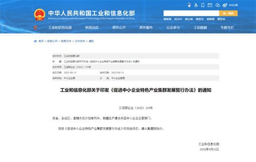 | “十四五”期間在全國認定200個左右集群!工信部發布《促進中小企業特色產業集群發展暫行辦法》 |