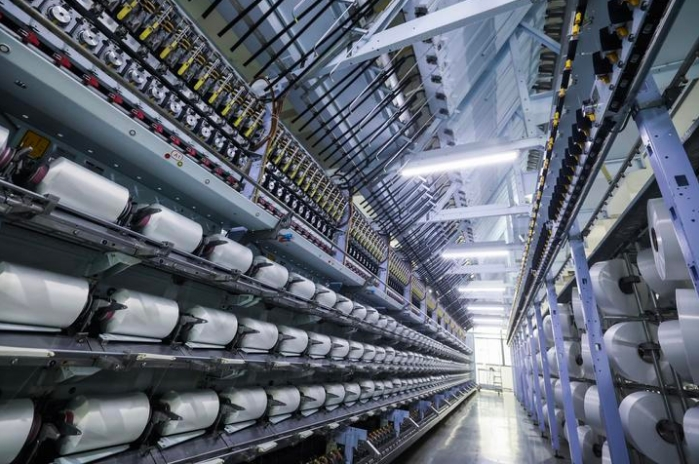 ![]() 4月8日,在位于浙江省紹興市柯橋區的紹興誠邦高新纖維科技有限公司智能生產車間內,自動化設備在生產滌綸絲。新華社記者徐昱攝