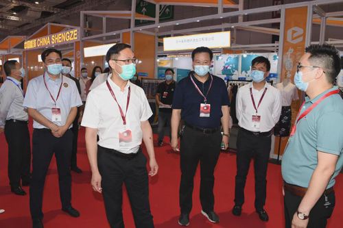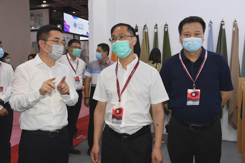 沈春榮來(lái)到盛澤企業(yè)的展位前,詳細(xì)了解企業(yè)最新研發(fā)產(chǎn)品成果,同時(shí)針對(duì)行業(yè)新趨勢(shì)、新環(huán)境、熱點(diǎn)話題,與企業(yè)負(fù)責(zé)人進(jìn)行了討論,對(duì)盛澤紡企克服重重困難,在有效應(yīng)對(duì)疫情的同時(shí),通過(guò)自主創(chuàng)新為行業(yè)培育了諸多創(chuàng)新產(chǎn)品、創(chuàng)新技術(shù),奮力邁向產(chǎn)業(yè)高端給予高度肯定。