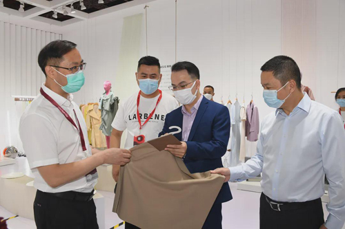 本次參展企業(yè)將面料以成衣形式展示,顛覆了傳統(tǒng)的面料經(jīng)營(yíng)模式,為盛澤面料行業(yè)提供了一個(gè)嶄新的渠道。在林林總總、五彩斑斕的面料區(qū)里,記者也看到了不少成品的樣衣,所展示的產(chǎn)品時(shí)尚感更強(qiáng)。“這些樣衣都是用我們展示的面料制成的。”相關(guān)企業(yè)負(fù)責(zé)人說(shuō),以成衣形式發(fā)布最新的面料,也是為客商的面料應(yīng)用提供了一個(gè)方案,適應(yīng)市場(chǎng)的需求。這樣能將盛澤面料更為直觀地展現(xiàn),以此帶來(lái)企業(yè)曝光度提高、銷售線索擴(kuò)展和用戶黏性的增加。 開(kāi)幕首日上午,中國(guó)紡織工業(yè)聯(lián)合會(huì)會(huì)長(zhǎng)孫瑞哲等中紡聯(lián)領(lǐng)導(dǎo)來(lái)到盛澤展團(tuán),參觀走訪了漢通等企業(yè)的展位,孫瑞哲在參觀過(guò)程中就今年受疫情沖擊影響、行業(yè)未來(lái)發(fā)展趨勢(shì)等方面,與副區(qū)長(zhǎng)、吳江高新區(qū)黨工委書(shū)記、盛澤鎮(zhèn)黨委書(shū)記沈春榮深入探討。