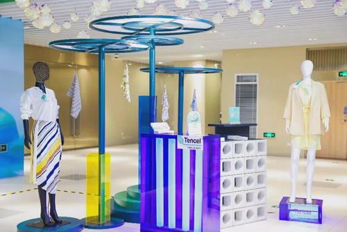 在頒獎盛典現場特設的產品展示區中,蘭精集團集中呈現了由零碳纖維織成的面料、悅菲纖面料、Modal indigo面料(原液著色)、環保黏膠EV面料等創新產品。