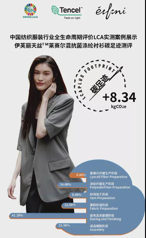 ![]() 蘭精集團和伊芙麗品牌合作開發的獲選“2020年度十大類紡織創新產品”的“時尚復古大翻領襯衣”,碳足跡測算值為8.8kgCO2;獲選“2021年度十大類紡織創新產品”的“零碳天絲?萊賽爾抗菌西裝”的測算值僅為8.34 kgCO2。