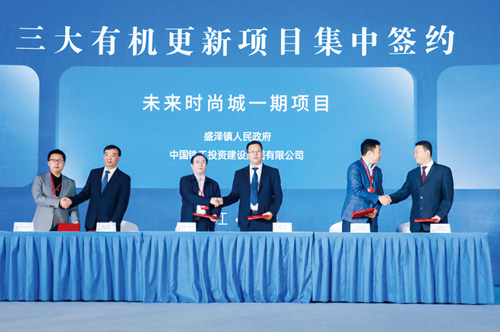 展會期間,三大有機更新項目的未來時尚城一期項目進行了簽約,盛澤鎮與東方國際(集團)有限公司建立戰略合作,將進一步實現在染整技術、雙碳、時尚、貿易、消費、數字紡織、人才培養和城市更新等八大領域開展全面合作,以進一步為盛澤高質量發展拓展新空間,釋放新活力,擦亮新顏值。