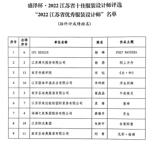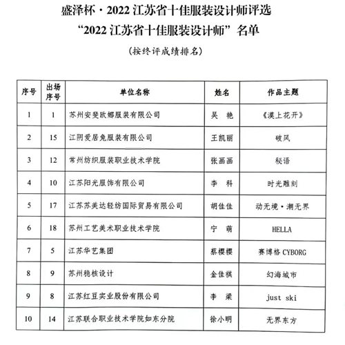 | 集聚時尚創意人才,2022江蘇省十佳服裝設計師揭曉 |