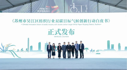![]() 《蘇州市吳江區(qū)紡織行業(yè)雙碳目標(biāo)氣候創(chuàng)新行動白皮書》發(fā)布會現(xiàn)場