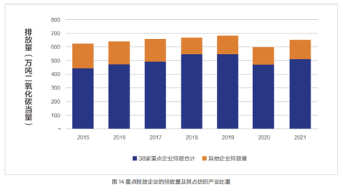 二是排放強(qiáng)度趨勢與排放總量相反,即先下降后上升,2021年排放強(qiáng)度約為1.21噸二氧化碳當(dāng)量/萬元。