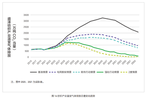 ![]() ![]() 盛澤紡織產(chǎn)業(yè)氣候行動目標(biāo)和路徑得以明確。基于情景分析結(jié)果,考慮國家雙碳目標(biāo)、地方達(dá)峰任務(wù)要求和盛澤紡織產(chǎn)業(yè)發(fā)展規(guī)劃,盛澤可選強(qiáng)化行動情景路徑為紡織產(chǎn)業(yè)氣候行動路徑。該情景下,紡織產(chǎn)業(yè)溫室氣體排放量將在2029年實現(xiàn)達(dá)峰,峰值水平為1214.6萬噸二氧化碳當(dāng)量,平臺期為2029到2035年,中和時間為2058年,排放量控制在150萬噸二氧化碳當(dāng)量以下。為實現(xiàn)上述目標(biāo),盛澤應(yīng)制定實施紡織產(chǎn)業(yè)綠色低碳轉(zhuǎn)型行動計劃,建設(shè)以高效、綠色、循環(huán)、低碳為特征的現(xiàn)代紡織產(chǎn)業(yè)體系,實現(xiàn)高質(zhì)量、可持續(xù)發(fā)展。可重點(diǎn)圍繞能源消費(fèi)低碳轉(zhuǎn)型、構(gòu)建綠色低碳產(chǎn)業(yè)體系、增強(qiáng)綠色技術(shù)創(chuàng)新能力、著力培育綠色低碳品牌等方面采取有力舉措。