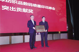 12月19日,2017全球紡織品數(shù)碼噴墨印花峰會在紹興柯橋召開,本次峰會由中國印染行業(yè)協(xié)會、紹興市柯橋區(qū)人民政府、紡織之光科技教育基金會共同主辦,紹興市柯橋區(qū)中國輕紡城建設(shè)管理委員會承辦。 會議以“科技+時尚,產(chǎn)業(yè)+市場”為主題,就全球紡織品數(shù)碼噴墨印花上下游最新技術(shù)和應(yīng)用發(fā)展趨勢,產(chǎn)業(yè)與市場聯(lián)動促進數(shù)碼印花新的產(chǎn)業(yè)形態(tài)和商業(yè)模式等內(nèi)容進行了研討和交流。 中國紡織工業(yè)聯(lián)合會會長孫瑞哲、副會長李陵申,工業(yè)和信息化部消費品司副司長曹學(xué)軍,中國工程院院士俞建勇,紹興市柯橋區(qū)區(qū)委書記沈志江、常務(wù)副區(qū)長諸劍明、區(qū)委辦公室主任吳國建,中國輕紡城建設(shè)管理委員會主任沈關(guān)祥,中國紡織工業(yè)聯(lián)合會副秘書長袁紅萍,紡織之光科技教育基金會常務(wù)副理事長葉志民,中國印染行業(yè)協(xié)會會長陳志華、原會長李金寶,中國紡織信息中心副主任董奎勇,中國印染行業(yè)協(xié)會秘書長林琳等領(lǐng)導(dǎo)及企業(yè)代表出席會議。 會上還授予中國輕紡城建設(shè)管理委員會“全球紡織品數(shù)碼噴墨印花峰會突出貢獻獎”,孫瑞哲為其頒發(fā)了獎牌。