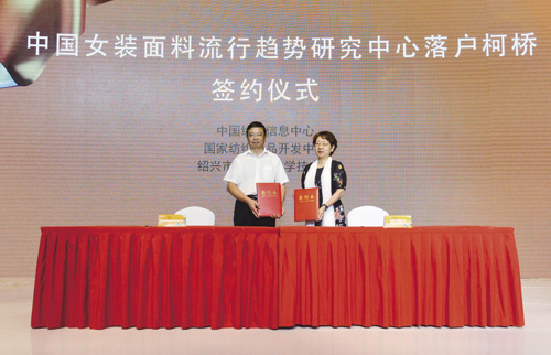 造濃時尚氛圍 構建時尚策源地 因為包容開放,柯橋時尚產業飛速成長,打造的不僅僅是一個本土化的柯橋樣本,更是一個始終打開大門擁抱潮流、擁抱時代的新天地。 柯橋時尚周自2015年舉辦,至今已步入第五屆。在“天天可時尚”的背景下,今年首次在傳統秋季時尚周的基礎上,舉辦春季時尚周,以“一年兩季”的新形式,接軌國際流行趨勢與品牌發布規律,進一步造濃柯橋時尚氛圍,完善柯橋時尚生態圈。本屆柯橋時尚周以“一展四賽十場秀”和“走進米蘭”為主體活動,依托柯橋紡織產業為主體的價值生態系統,聯動全球產業鏈高端優質資源,打造了集趨勢發布、人工智能、面料創新、權威賽事、時尚秀演、設計展示、國際交流、產業對接于一體的時尚創意集合活動。 趙如浪表示,柯橋的時尚基礎越夯越實,不僅新建了“東方米蘭”國際時尚展示發布中心、中紡CBD時尚中心等一批高標準的秀場、展館,還引進了中歐時尚“夢工廠”。此外,柯橋的紡織工業創意設計基地已成為國家級創意基地,通過積極構筑時尚創意產業生態體系,大力推動“設計+制造”、“設計+品牌”等產業化發展。今年1~8月,全區時尚創意產業實現營業收入350億元,同比增長12%。當前,柯橋區正圍繞打造新時期“國際紡織之都”這個目標,盡全區之力,推進輕紡市場整體進化,力爭到2020年,將輕紡城打造成為“開放、時尚、智慧、高端”的現代化新型市場。 在啟幕式上,作為柯橋區人民政府與中國紡織信息中心、國家紡織產品開發中心的代表,紹興市柯橋區科技局局長沈關祥和中國紡織信息中心主任喬艷津共同簽署《中國女裝面料流行趨勢研究與發布中心落戶柯橋》協議。據悉,雙方將依托該中心從“搭建時尚平臺、共創時尚趨勢、融合時尚資源”三個維度展開深度合作,形成持續常態化的流行趨勢發布體系,共同致力于推動柯橋時尚策源地的打造和時尚柯橋的建設。