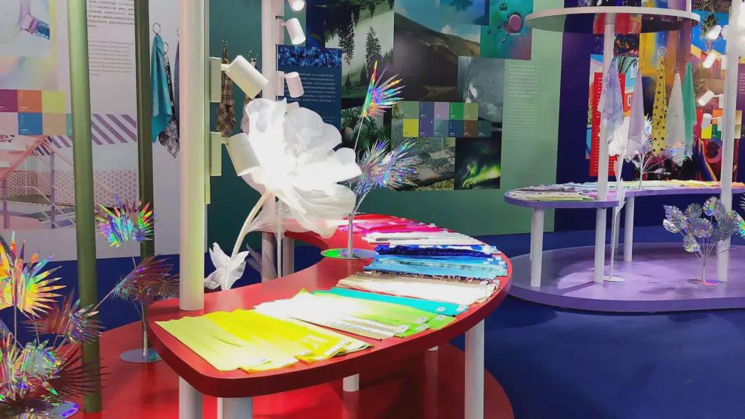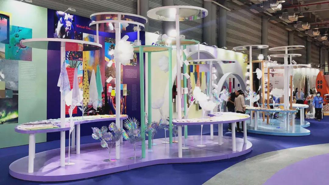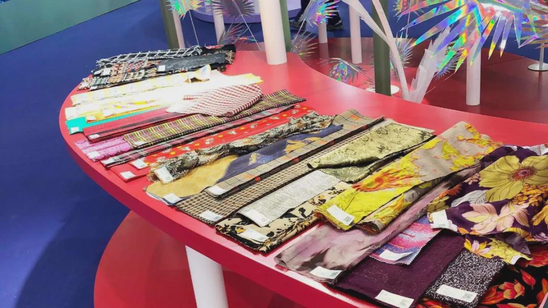 第四主題“幻·造化”中,復(fù)古暖色調(diào)與虛幻冷冽的光感色彩一道渲染出歡樂(lè)避世和虛擬現(xiàn)實(shí)氛圍。一系列帶有變形幾何、數(shù)字電波效果、數(shù)碼花卉紋樣的圖案以提花、印花或復(fù)合工藝的形式大量出現(xiàn);賽博風(fēng)格、自由無(wú)序的混搭風(fēng)格碰撞出的奢華的復(fù)古未來(lái)風(fēng)格也在展示面料完美展現(xiàn)。未來(lái)科技主義金屬外觀面料與抗菌抑菌等功能性搭配是非常重要的關(guān)注要點(diǎn)。 為了方便參展觀眾查看相關(guān)信息,每款展示面料均將通過(guò)自身植入的人工“芯片”(面料產(chǎn)品詳細(xì)信息),結(jié)合由中國(guó)紡織信息中心傾力研發(fā)的人工智能看展工具,以別具一格的智能化體驗(yàn)方式,為廣大參展觀眾提供流行色彩、設(shè)計(jì)方向、面料采購(gòu)等多元服務(wù),有效促成產(chǎn)業(yè)鏈上下游商務(wù)對(duì)接,更為柯橋紡企構(gòu)建便捷的專業(yè)對(duì)接渠道。