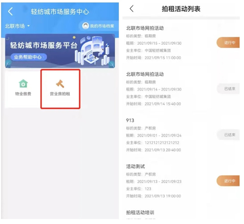 玩轉營業房“網拍” 從“往返跑”升級為“零次跑” 營業房拍租系統是“數字市場”營業房管理系統中的重要模塊,上線應用后,將告別市場傳統拍租會模式,市場管理方可通過該系統創建線上拍租活動,發布拍租標的和各項規則,并在線審核拍租報名信息與保證金,實時掌握所有拍租活動的進程與數據。而經營戶可通過網上輕紡城APP的營業房拍租模塊,選擇拍租活動報名并上傳保證金憑證,隨時隨地參與拍租,提升營業房拍租效率。