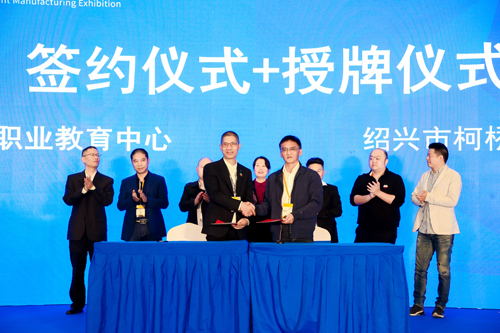 作為本次論壇的重頭戲,現場還舉行了助學儀式,紡織繡花商會在紹興市柯橋區職業教育中心設立“錦繡前程”創意學生獎助金項目,雙方代表簽署助學捐贈協議,捐助6萬元,幫助并鼓勵優秀學生和困難學生更好、更有條件地完成學業。校長鐘健康現場代表學校,授予商會“愛心助學、領軍行業”資助榮譽牌匾,支持紹興柯橋紡織繡花行業創新人才的培育計劃。