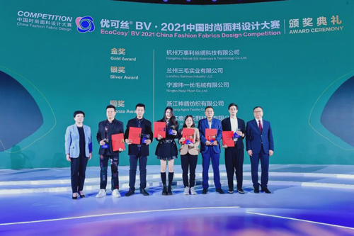 主辦方頒發了金獎、銀獎、銅獎三項綜合獎及時尚色彩獎、創新科技獎、優可絲?BV 市場應用獎、萊賽爾市場應用獎、優可絲?紗線合作企業創新獎。本屆大賽有347家企業參與,近2400塊面料參評,從中涌現出了一批代表行業時尚水準的優秀產品,成果相當豐碩。