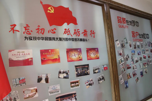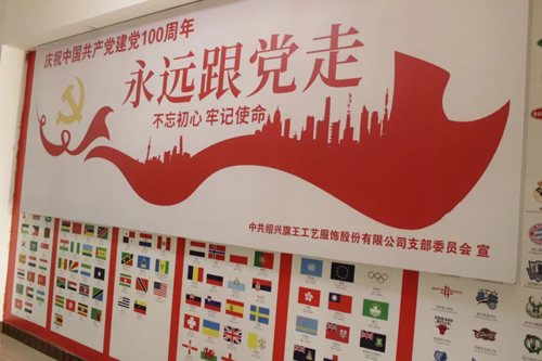 走進旗王所在工業園區,“百年旗王 萬年中華”幾個字格外耀眼,從一樓大廳到黃國興辦公室通道兩旁的墻上,貼滿了“不忘初心 牢記使命”、“誠信為本”、“品質在我手中 客戶在我心中”等標語,時刻提醒著員工們在國旗下工作的責任和使命。