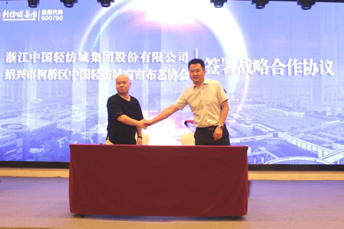 ![]() 浙江中國輕紡城集團股份有限公司北聯市場分公司與紹興市柯橋區中國輕紡城窗簾布藝協會簽署戰略合作協議。