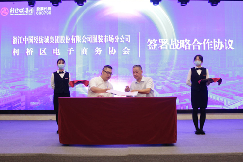 ![]() 浙江中國輕紡城集團股份有限公司服裝市場分公司與柯橋區電子商務協會簽署戰略合作協議。