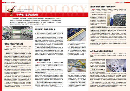 | 2022中國紡織服裝行業年度精銳榜揭曉常熟紡機獲十大科技驅動榜樣 |